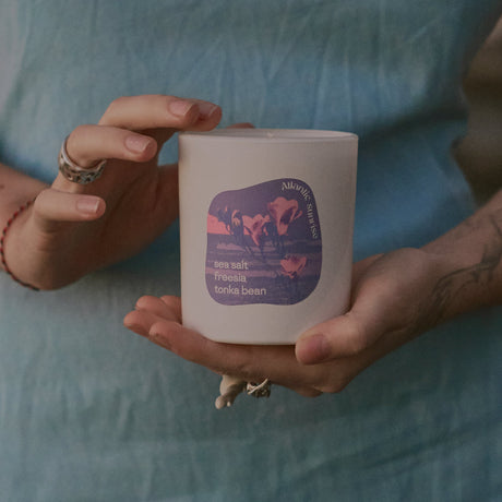 Our candles use a plant-based coconut-soy blend wax with IFRA-vetted fragrance oils, cotton wicks, and nice glossy refillable jars. No paraffin, phthalates, or any harmful substances.