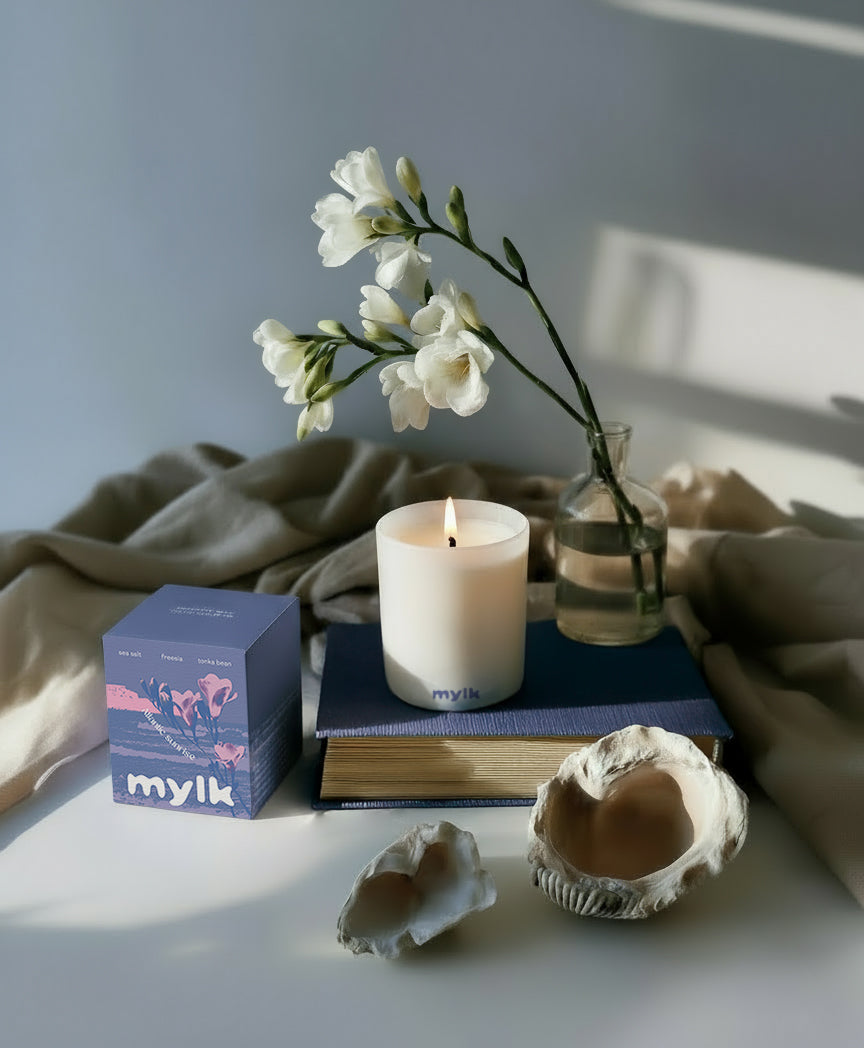 For Atlantic Sunrise I set out to capture the magic of Cape Town mornings — blooming freesia mingled with ocean salt. It opens on a fresh sea-salt breeze, the Atlantic spray carried by the wind; breathe deeper and find the gentle sweetness of freesia you’ll recognise from Sea Point’s winter gardens. Mineral-green and salty-sweet, it’s the blend I reach for in daytime candles and diffusers to set the mood for the day.