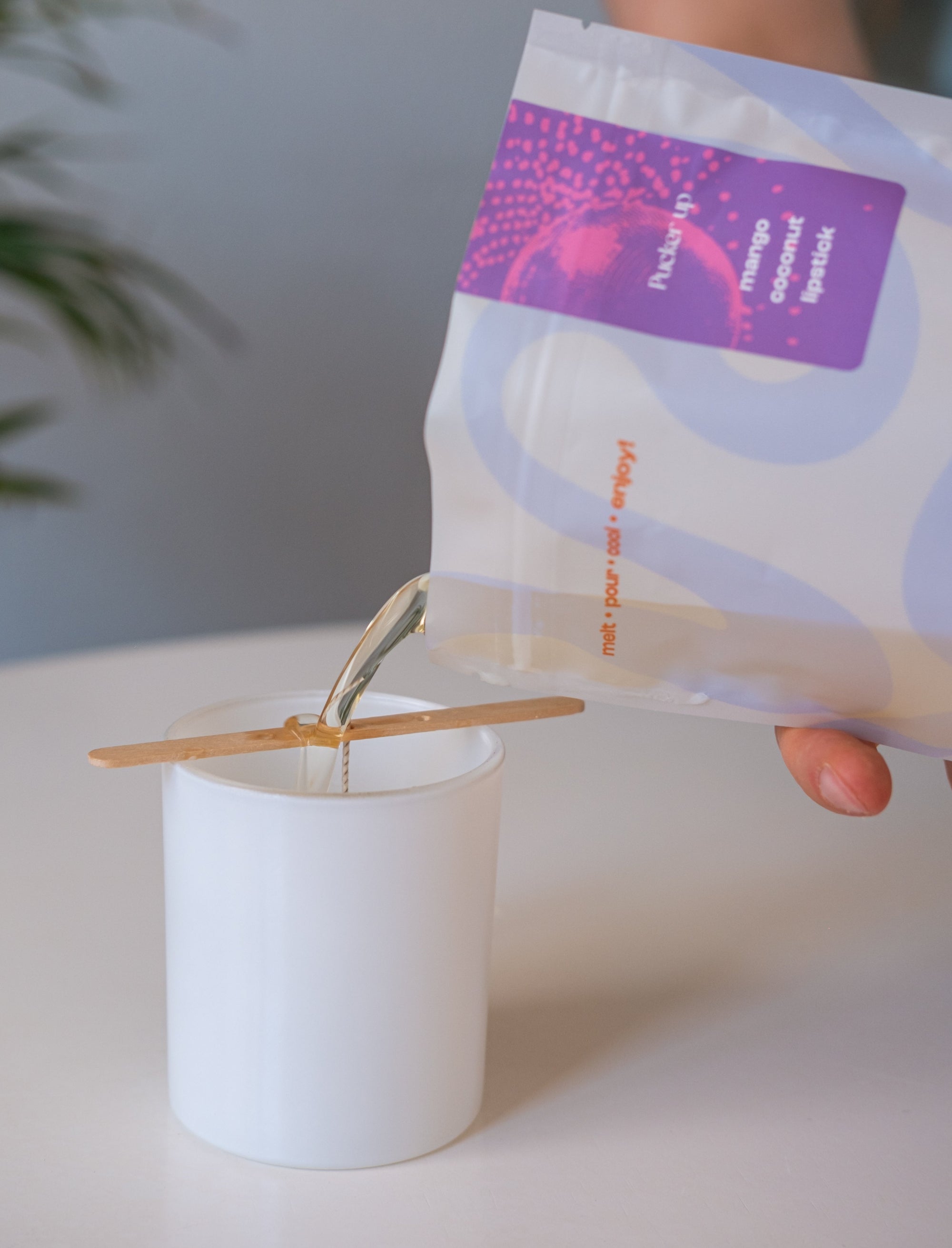 Meet the Mylk Pack — pre-blended, perfume-scented wax pouch that melts straight into any cup, tumbler, shell, clay pot — whatever vessel has your heart. Ten relaxed minutes, one stovetop or microwave, and you’ve poured a beautiful candle with your own two hands.