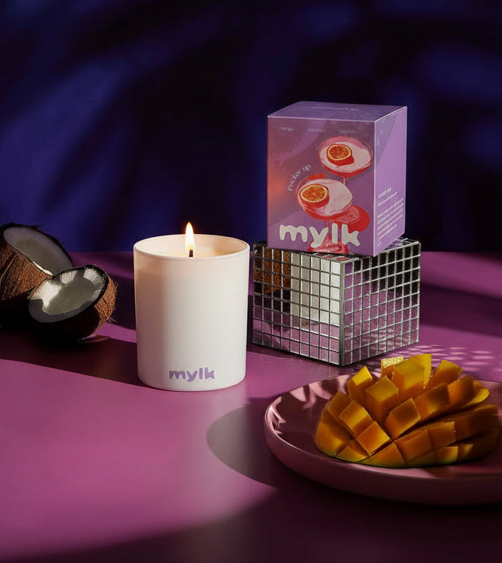 For the first light, simply let the wax melt all the way to the glass edge to set an even “memory” pool. Place the candle on a level, heat-safe surface away from drafts, air-conditioning and direct sun, and keep it out of reach of children and pets. For subsequent burns, trim the wick to about 6 mm before lighting. Burn in sessions of 2-4 hours; if the flame grows tall or you notice smoke, extinguish, allow the wax to cool, trim a little shorter and relight. To avoid tunnelling, allow each burn to create an even surface across the top. Snuff rather than blow to minimise smoke, and store your candle in a cool, dry place to protect the fragrance. When the candle is finished, you can clean out the jar and either refill it with a Mylk Pack or repurpose the vessel.